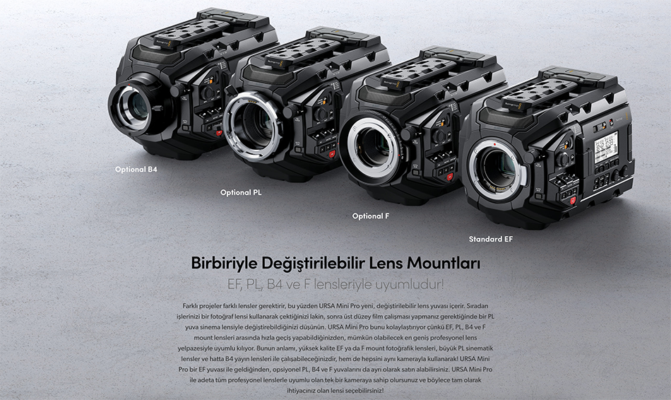 Devrim yaratan URSA Tasarımı Kullanımı hızlı olan büyük kamera özellikleri, hafif ve portatif tasarımda! URSA Mini Pro, bir el kamerasında ihtiyaç duyacağınız her şeyi içerecek şekilde tasarlandığından, istediğiniz yere götürebilirsiniz! Ucuz plastik kameraların aksine, ağırlığı dengelenmiş kamera gövdesi çok sağlam magnezyum alaşımdan üretilmiştir. Güç düğmesi de dahil olmak üzere her bir kontrole birden fazla erişim sağlayan gerçek profesyonel bir kameradır. Ayrıca, dokunsal kontroller sayesinde kamerayı omuzunuzdan indirmek zorunda kalmadan, tüm ayarları değiştirebilirsiniz! Kritik çekim bilgilerini görebilmeniz için harici yüksek görünürlüklü bir LCD durum ekranı ve bir açılır dokunmatik 4 inç ekranı vardır, böylelikle set içinde fazladan bir monitör getirmenize gerek kalmadan çekimleri gözden geçirebilirsiniz! 12G-SDI, XLR ses, dahili bir yüksek kalite mikrofon gibi, profesyonel bağlantılara ve daha nice özelliklere sahip oluyorsunuz. Opsiyonel olan elektronik vizör ve omuz aparatı, saniyeler içinde tripoddan el çekimine geçiş yapmanızı mümkün kılıyor ya da, bir URSA Studio Viewfinder ilave ederek URSA Mini Pro'yu, en üst düzey canlı prodüksiyon kamerasına çevirebilirsiniz. |