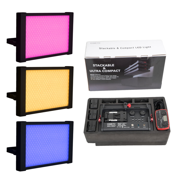 Perseus RGBDT 55W Seyahat Işıkları, panellerin istiflenmesini kolaylaştırarak düz bir şekilde katlanmalarını sağlayan benzersiz bir boyunduruğa sahiptir. Pelican 1510 ve 1535 sert kasalarına sığan bir köpük paket içeren birkaç kit vardır ve tüm ışıklandırmanız tek bir kasada sizi gitmeniz gereken yere götürür.