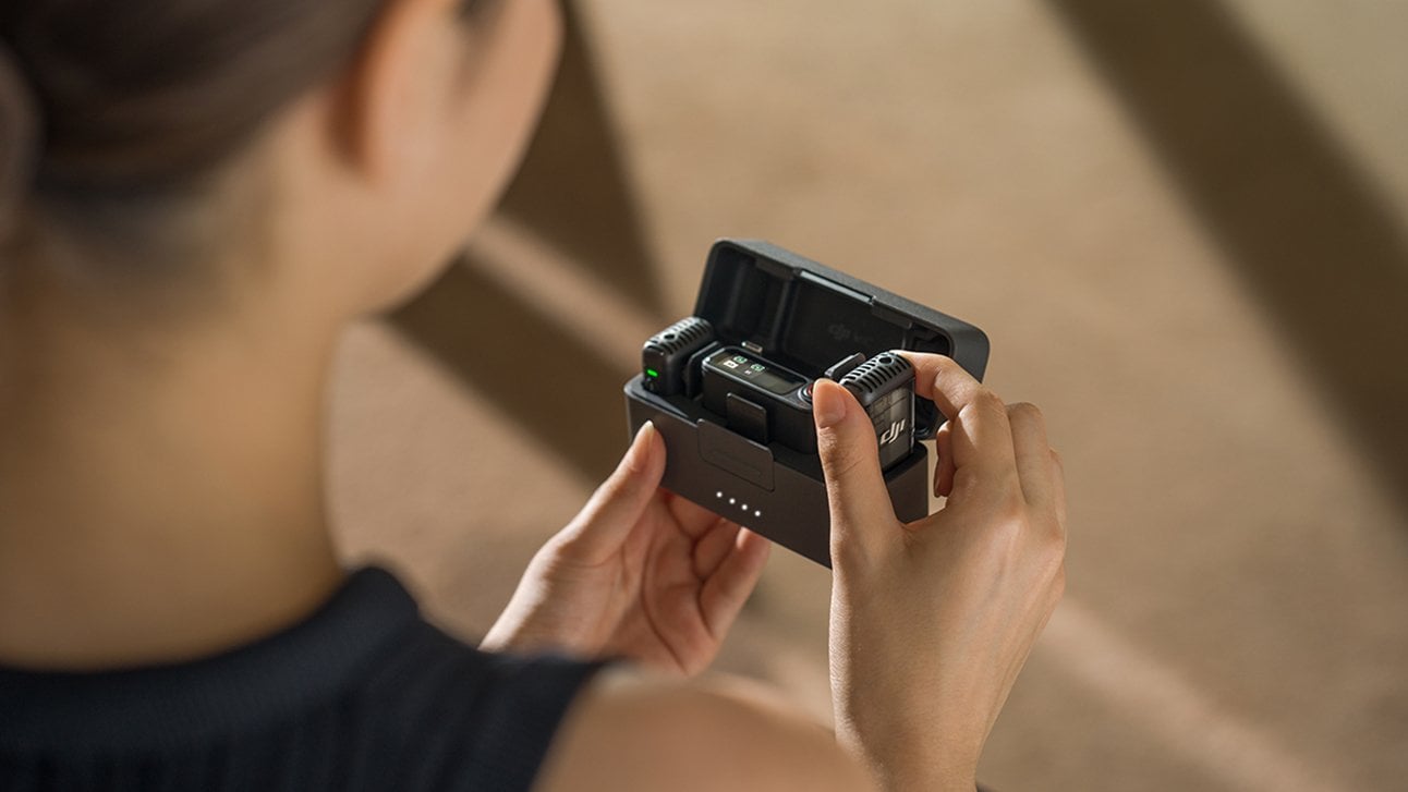 DJI Mic 2 Şarj Kutusu, şarj sırasında alıcı ve vericileri otomatik olarak bağlayarak eşleştirme işlemini basitleştirir.