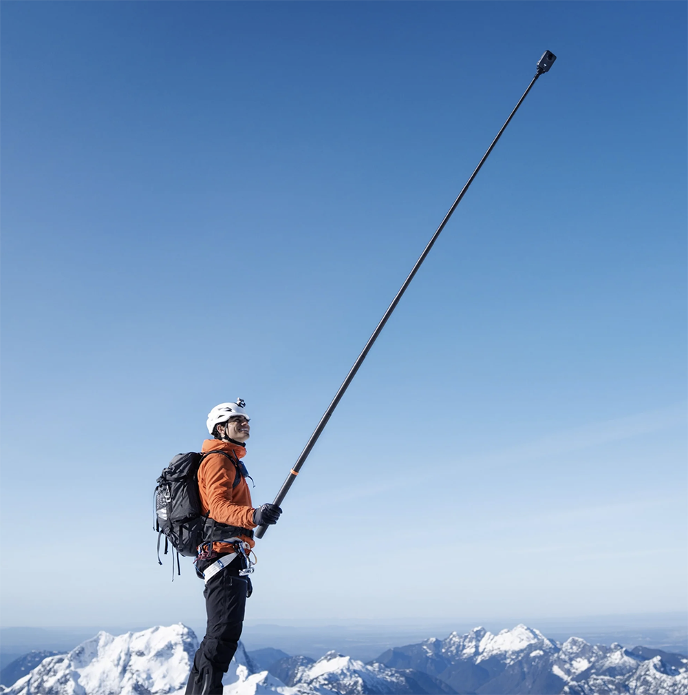 DJI'ın Osmo Extended Karbon Fiber Selfie Çubuğu ile Osmo 360 aksiyon kameranızı kullanarak yüksek açılı çekimler yapın . Sağlam çubuk, uzatılmış bir selfie çubuğu olarak kullanılmak üzere 2,5 metreye kadar uzayabilir ve 450 gramdan daha hafiftir. Çubuk, çekimlerinizden dijital olarak çıkarılabilen Osmo 360 ile 360° çekimler yapmak üzere tasarlanmıştır.