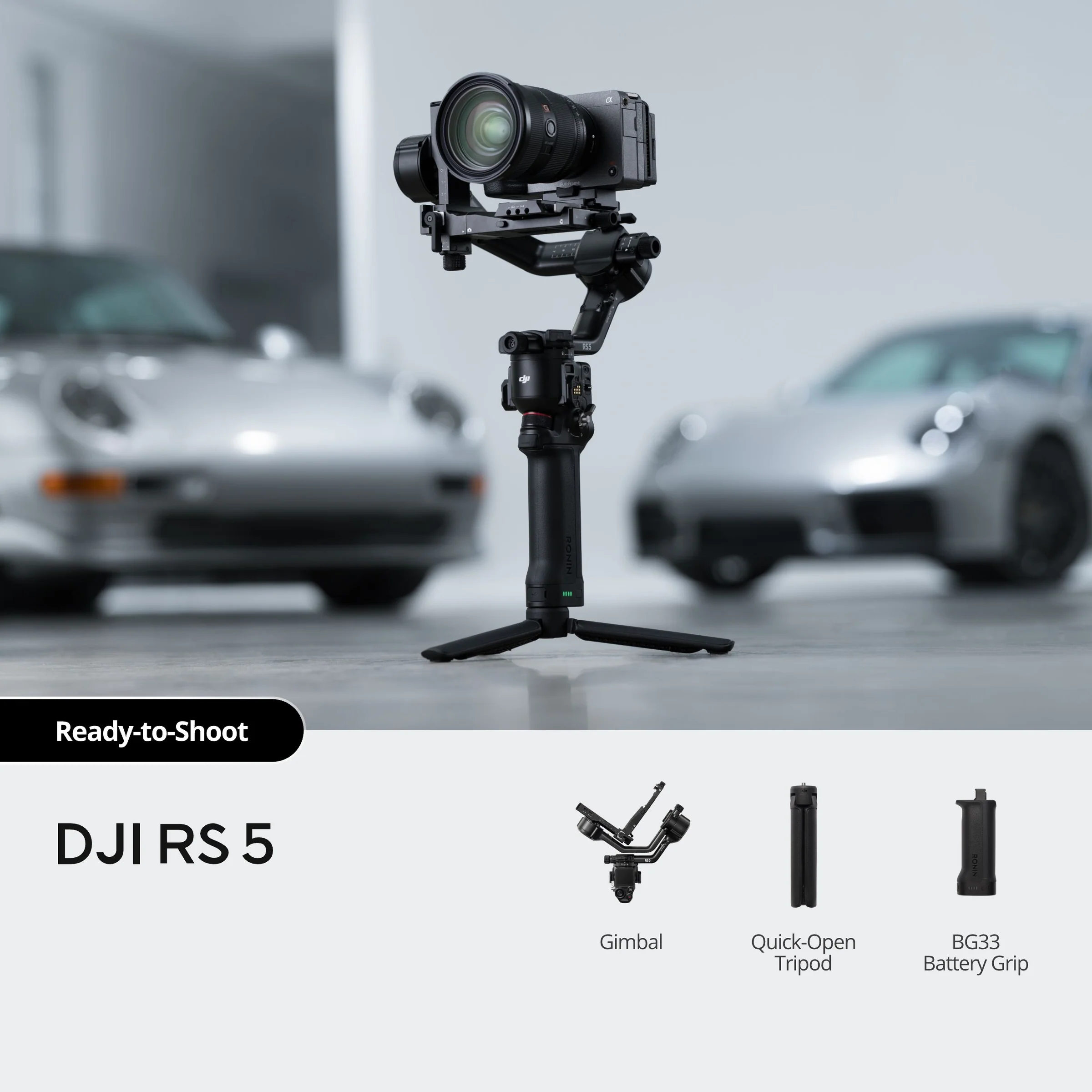 DJI'nin RS 5 Gimbal Sabitleyicisi ile Z ekseni (dikey) stabilizasyonu da dahil olmak üzere çok daha akıcı video çekimleri elde edin . Bu güçlü ancak hafif gimbal, yalnızca bir saatte tam şarj olma, %15 daha uzun çalışma süresi, Teflon ile güçlendirilmiş dengeleme ve ince ayar düğmeleri özelliklerine sahiptir. Elektronik kontrol kolu ve gelişmiş yapay zeka çerçeveleme ve izleme modülleri ayrıca satın alınabilir.