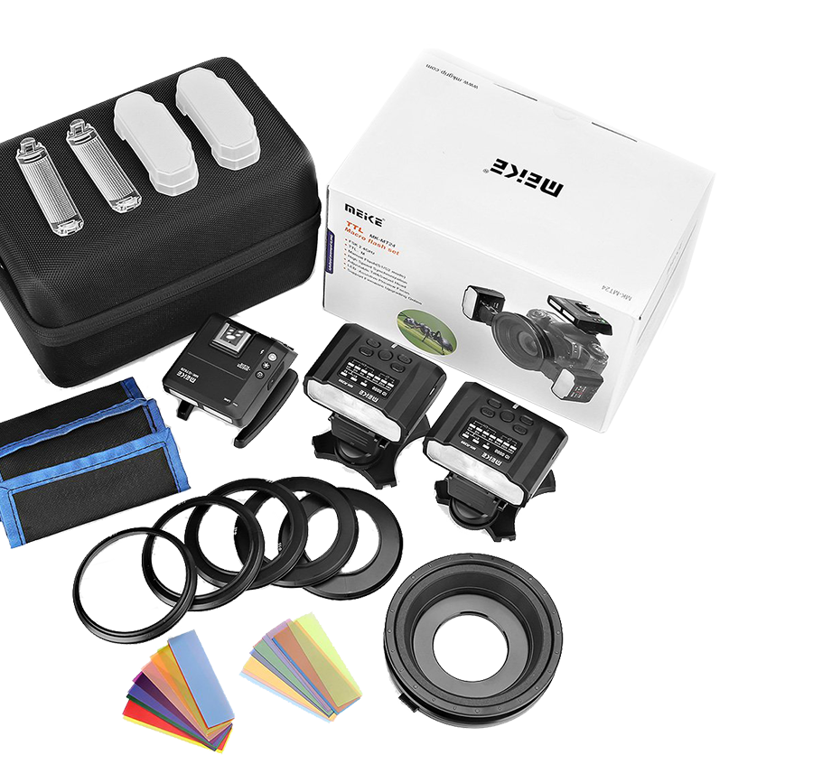 Meike , 2.4GHz kablosuz TTL, HSS ve Uzaktan Manuel Güç kontrolü sağlayan MK-MT24 Makro İkili Flaş Kitini piyasaya sürdü .